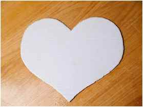 Так как крона этого дерева будет в форме сердца, то вместо привычных шаров нам понадобятся 2 листа плотного белого картона. Из него нужно аккуратно вырезать две заготовки.
