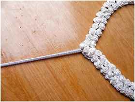 Ствол для топиария можно сделать из китайских палочек, сложенных вместе. Их нужно обмотать белой лентой, а для того чтобы декор лежал ровно и красиво, можно через каждые 4 см прикреплять ленту с помощью капельки клея. Кончики палочек с одной стороны оставьте без ленты, для того чтобы ствол можно было прикрепить к кроне. Для этого палочки с капелькой клея нужно аккуратно вложить между первым и вторым сердцем.