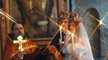 Тайна венчания: Венчание в православной церкви рассматривается как одна из семи таинств. Оно включает в себя множество символических действий, таких как обряд «окружения» молодоженов вокруг аналоя с Евангелием, что символизирует их единство и совместный путь в жизни. Этот обряд подчеркивает важность духовной составляющей брака в православной традиции.