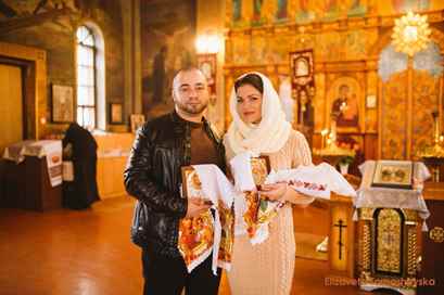- рушники. Один рушник расстилают под ногами брачующимся, а вторым перевязывают им руки. После таинства их хранят супруги в своей семье;