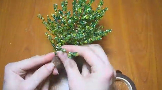 То же самое проделываем с каждой веткой, на макушке 1 самую маленькую ветку крепим вертикально, не оборачивая вокруг ствола.