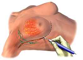 Радикальная резекция подразумевает удаление не только опухолевого очага, но и находящейся под молочной железой фасции большой грудной мышцы, а также регионарных лимфатических узлов.