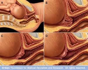Так как первый этап раскрытия шейки матки может проходить незаметно, женщина должна распознавать симптомы этого процесса. Сначала может ощущаться расширение в области паха, после чего начинаются еле заметные схватки, во время которых можно даже поспать. Далее схватки усиливаются, расширение становится больше, отходит слизистая пробка, на данном этапе женщина уже должна находиться в больнице, и врач ее должен наблюдать.