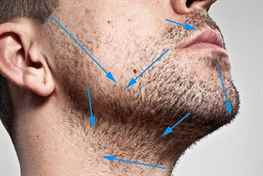 Вести бритву необходимо исключительно по направлению роста волос. В этом случае процесс бритья проходит медленнее, но риск появления раздражений значительно снижается. На фото вы можете видеть, в каком направлении правильно вести бритву при депиляции разных участков тела.