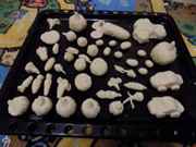 - Состав теста для маленьких деталей отличается добавлением в него крахмала. При этом его должно быть в два раза меньше, чем соли и муки, а их соотношение – 1:1. Например, если вы взяли по 300 гр сухих веществ, то крахмала – 150 гр, а воды – 2/3 стакана. Крахмал разбавляют в воде!