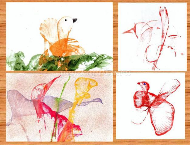 Я — небесный верхолаз, Я по небу лазаю, А потом оттуда — раз! – Опускаюсь на землю. Ты не веришь? Ну и что ж… Все равно это не ложь, А моя фантазия. В моей голове тоже проснулась её Величество Фантазия, и родился маленький стишок, посвящённые этому способу рисования.