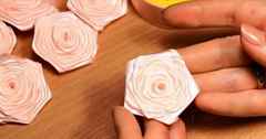 - После этого можно приступить к сборке розы. Берут клеевой пистолет, промазывают первый листочек и приклеивают к серединке. Так приклеивают все 13 лепесточков, чередуя их между собой, образуя замечательную и пышную розочку.