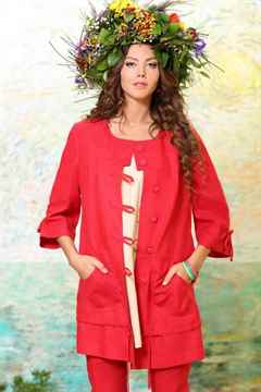 | Длинный, с крупными пуговицами, яркого цвета | Простая белая футболка, узкие джинсы, леггинсы, однотонное платье | Стильный, неформальный, яркий |
