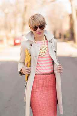 Во-вторых, не забывайте о верхней одежде. Пиджак или жакет в классическом стиле, выполненный в одном из нейтральных цветов, поможет завершить образ и добавить ему строгости. Например, черный или серый пиджак будет прекрасно смотреться с коралловой юбкой, придавая вашему наряду деловой вид.