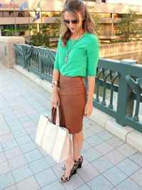 Благодаря разнообразию материалов и фактур, коричневую юбку-карандаш можно использовать не только на работу, но и в обычной жизни, и это будет выглядеть не слишком строго и официально, а наоборот стильно, молодо и красиво.