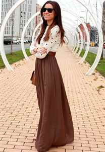 С чем носить коричневую юбку-макси?