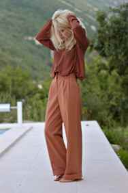 Универсальность стиля: Широкие брюки подходят для разных стилей — от кэжуал до офисного. В летние месяцы их можно носить с сандалиями и легкими топами, а в холодное время — с ботинками и укороченными куртками. Это делает их универсальным элементом гардероба, который легко адаптируется под любые условия и события.
