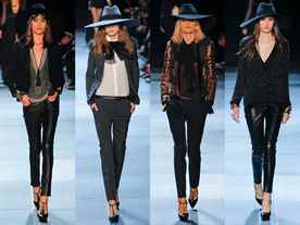 | Кожаные узкие брюки | Объемный свитер, ботинки на грубой подошве | Стильный, дерзкий |