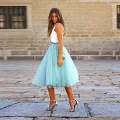 Фатиновые юбки могут смело носить стройные и высокие женщины. Расклешенные модели идеально подойдут для миниатюрных девушек. Хотя это не означает, что ты должна отказаться от фатина, если у тебя слегка округлые формы.