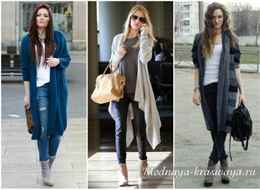 Невероятно стильно смотрятся длинные кардиганы в пол. Более объемные вязаные модели — просто хит осенне-зимнего сезона. Мягкий и комфортный кардиган согреет в ненастную погоду и позволит оставаться модной и стильной любой женщине. Кардиган пальто служит альтернативой классическим моделям верхней одежды. Хотя, конечно, на сильный холод он не рассчитан.