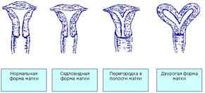 | Форма матки | Седлообразная, с вдавлением в области перешейка | — |
