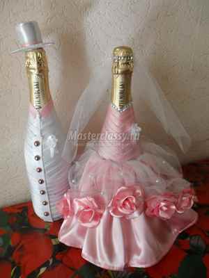 Декорирование бутылок шампанского «жених и невеста»