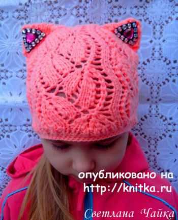 Шапка – кошка для девочки спицами. Работа Светланы Чайка