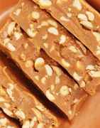 Предлагаем приготовить интересный вариант щербета из печенья. Для него понадобится: по 400 г печенья и конфет под названием Коровка, половина банки сгущенного молока, сто граммов сливочного масла, 200 г арахиса.