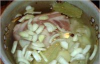 - Капусту добавляют к мясу. Если капуста свежая, то ее можно забросить в кастрюльку не раньше, чем через час после закипания, если речь идет о квашеной капусте, то ее добавьте сразу, как только убрали пенки.