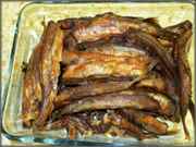 5. Чтобы шпроты имели копченый аромат, применяем приправу «жидкий дым» около 3 ст.л. Вместо нее можно положить в кастрюльку немного копченой рыбы или ее хвостовую часть, либо плавники.