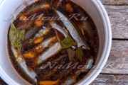 Маринование. В подготовленный рассол аккуратно положите мойву. Убедитесь, что рыба полностью покрыта жидкостью. Накройте кастрюлю крышкой и оставьте мариноваться на 2-3 часа при комнатной температуре. Если хотите, чтобы шпроты были более насыщенными, можно оставить их в рассоле на ночь в холодильнике.