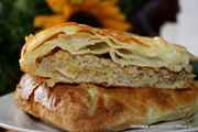 Чтобы приготовить такое блюдо, нужны будут следующие ингредиенты: тыква – 300 г; фарш – 700 г; слоеное тесто – 540 г; яйца куриные – 2 шт; лук – 4 шт; кориандр и мускатный орех; соль.