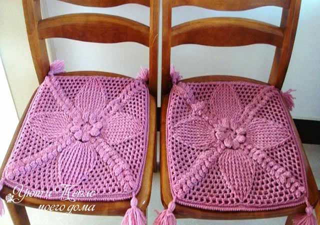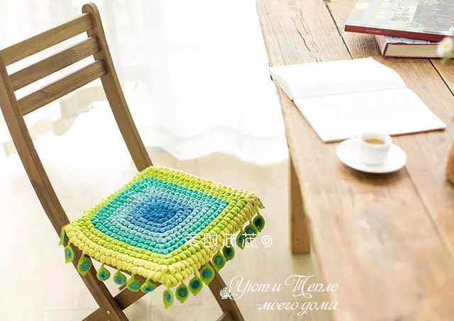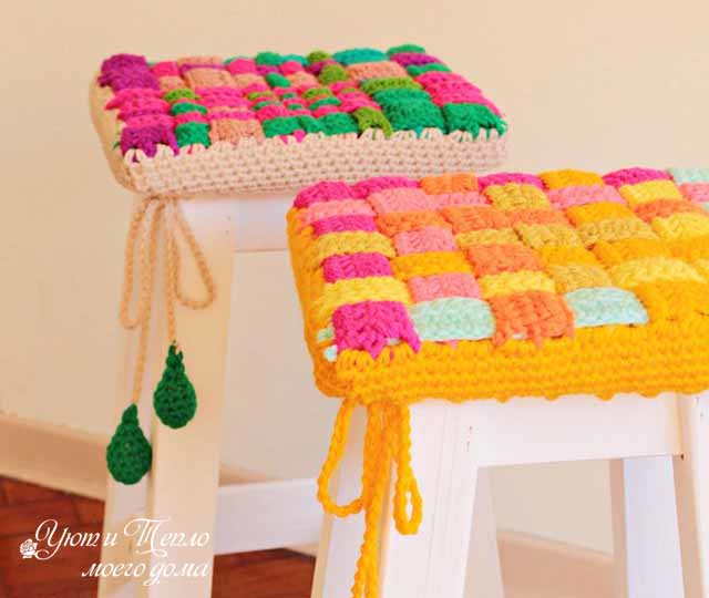 Квадратные коврики подойдут на стулья и табуреты квадратной формы сидений. Самые простые сидушки вяжут чаще всего бабушкиным квадратом.