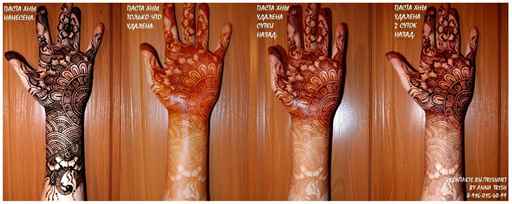 | Хна-печать (специальные штампы) | 1-3 дня | Избегать трения и контакта с водой в первые часы после нанесения. |