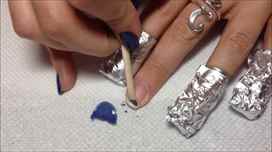 Другой способ подразумевает снятие фольгой. Для этого нужно взять 10 кусочков ватных дисков и десять кусочков фольги, желательно, чтобы они были немного больше, чем форма ногтя. Перед процедурой нужно намазать масло на кутикулу и кожу вокруг ногтя, далее необходимо пропитать ватные диски ацетоном и нанести их на ногти, после этого необходимо обмотать каждый ноготь кусочком фольги и выдержать их нужно около 10 минут. После этого снова нужно взять ватные диски и смочить их в ацетоне, и уже новыми дисками удалить покрытие на ногтях.