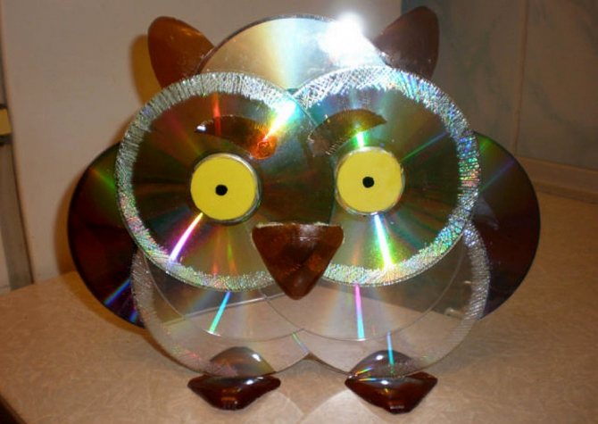 Чтобы изготовить такую поделку, придется немного потрудиться. Сова из дисков своими руками собирается довольно просто, но работа довольно кропотливая.
