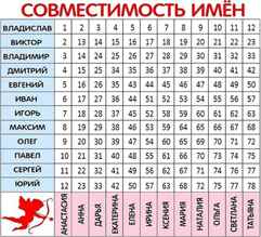 | Имя | Фамилия | Нумерологическое число имени и фамилии (сумма числовых значений букв) |