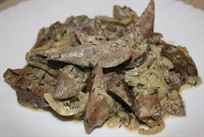 - Печень тщательно промойте под холодной водой и нарежьте на небольшие кусочки.