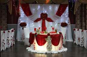 | Декор свадебной арки | Красные цветы, ленты, ткани | Цветы цвета марсала, ткани цвета марсала и бежевого |