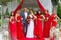Свадьба в оттенках красного является удобным случаем выделить веселость и неординарность подружек невесты. Поэтому можно подобрать для них платья в ярких красных оттенках.