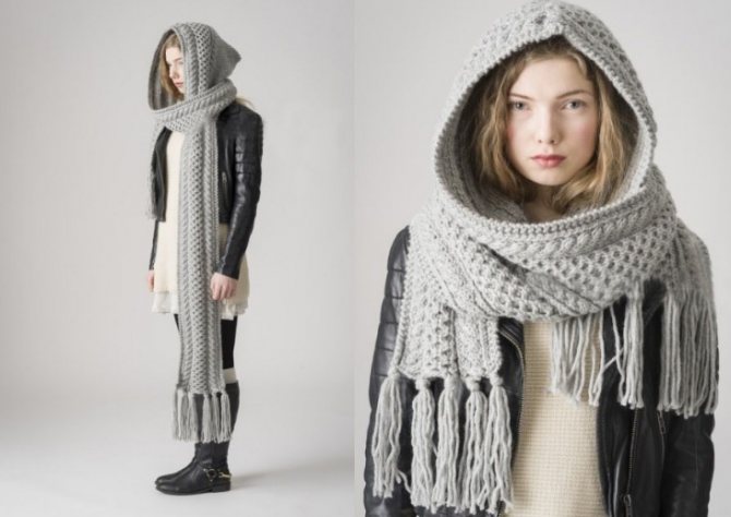 Какие преимущества у шарфа-капюшона, связанного спицами