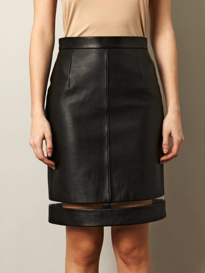 Расширить или удлинить прямую кожаную юбку можно достаточно простыми способами применения вставок: