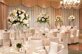 Если для украшения зала выбрали цветы, так же, как в случае с машиной, не надо забывать, что без воды они скоро увянут. Для декораций лучше использовать искусственные, а вот живые можно расставить в больших вазах по залу.
