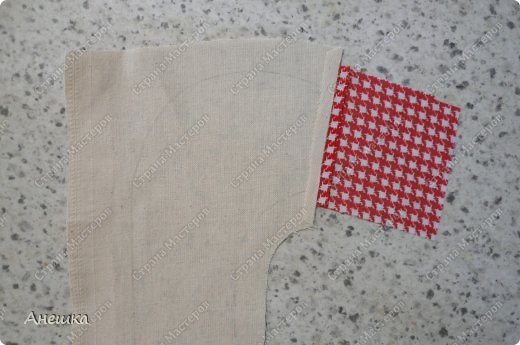 Зашиваем нижний край шеи. Прикладываем шею по центру мешка к внутренней стороне. Также можно пришить шею и к наружной тыльной стороне. Это вы определяете по своему желанию.