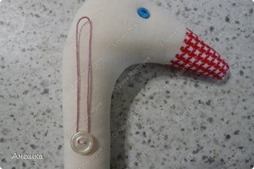 На тыльную сторону шеи пакетницы пришиваем пуговицу для крепления игрушки.