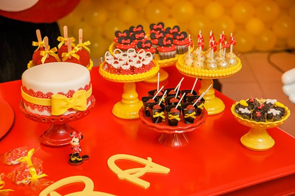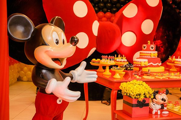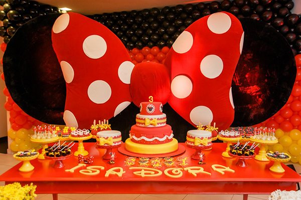 Хотите мультяшных красок и радужной пестроты? Черного минимум, акцент на желтый, синий и красный. Белый горошек на любом ярком и черном фоне считают едва ли не визитной карточкой темы. Предлагаем идеи оформления для вечеринки в стиле Минни Маус: