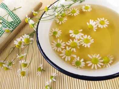 Для приготовления такой ванны нужно засыпать 300-500 граммов высушенных цветков ромашки в эмалированную посуду, залить крутым кипятком и настаивать в течение получаса. Затем отвар залить в ванну с водой температурой 36-37 градусов. Курс составляет 10-12 процедур по 10-15 минут.