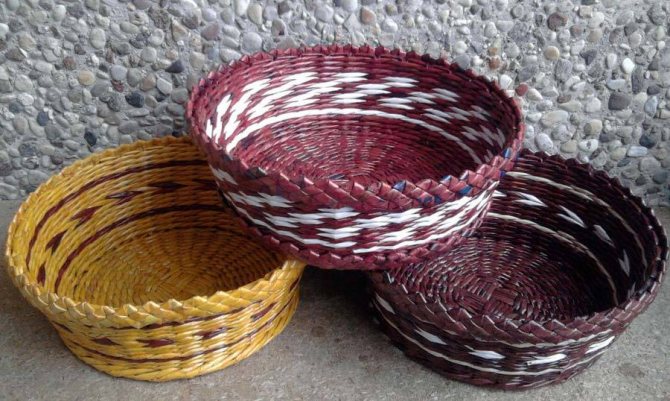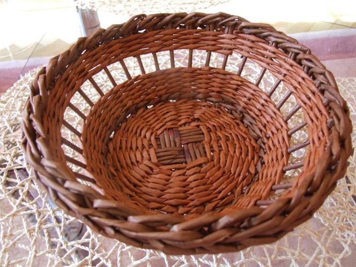 ВАЖНО: Дно фруктовниц, конфетниц и блюд из газетных трубочек нужно обязательно плести вручную, а не вставлять картонную основу.