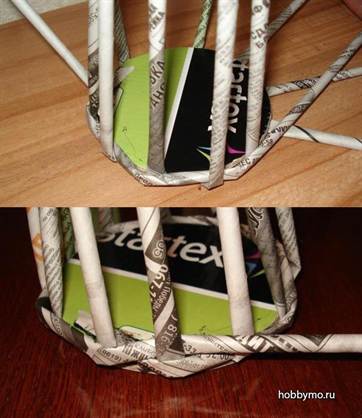 Плетение блюда из газетных трубочек