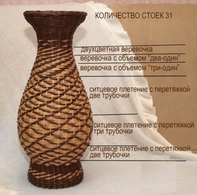 Плетение вазы высокой из газетных трубочек: узоры, схемы, описание