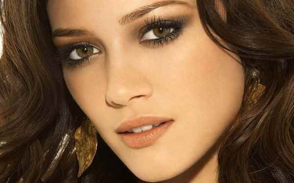 Проводим очищение кожи лица. На бровях рисуем стрелки и наносим тени цвета волос. Веки прокрашивают любым оттенком фиолетового или оранжевого. Для светлых шатенок рекомендуется коричневая тушь, которая зависит от тона волос: чем темнее волосы, тем чернее должна быть тушь. Румяна выбираем также чуть светлее, чем волосы, а помаду — темнее.