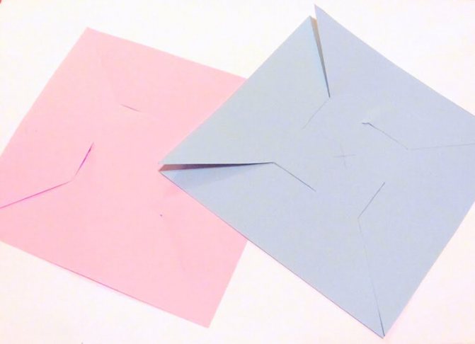 Берем в руки ножницы и делаем 4 надреза строго по линиям, не заходя за заранее сделанные отметки. Каждый из 4х получившихся элементом можно немного согнуть