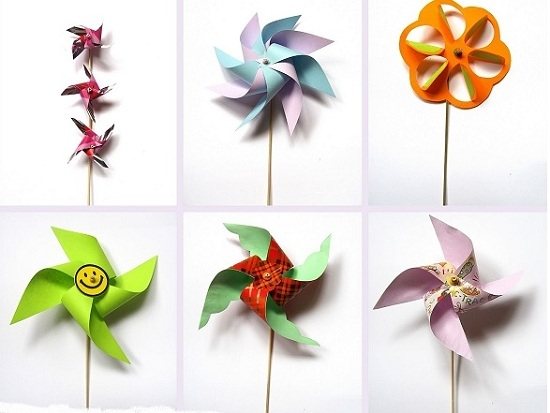 Вертушка из бумаги для детей своими руками имеет различные варианты. Они могут быть легкими, одноцветными, комплексными, круглыми, разрезными, круглыми, многолопастными.