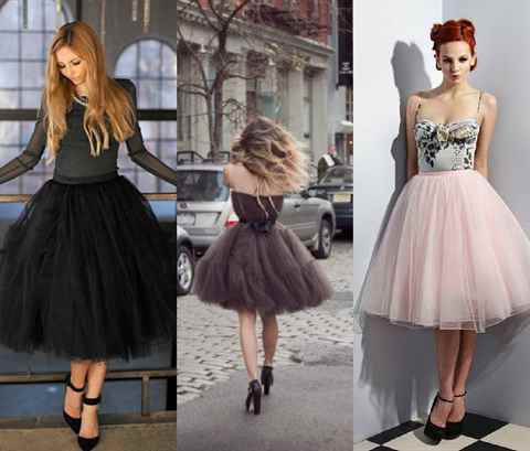 Имеет другое название «юбка балерины». При виде девушки в летящей, пышной, широкой юбке, выполненной из множества защипов, длина которой чуть ниже области ягодиц, сильное население планеты разворачиваются и идут вслед за ней. Модницы в них выглядят просто потрясающе.