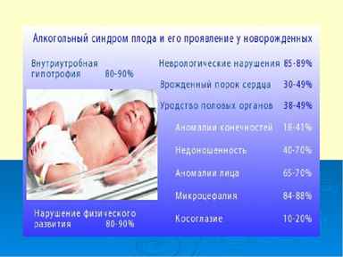Влияние спирта приводит к несоответствию веса и роста плода, патологиям сердца, дефектам половых органов, расстройствам речи, лицевым уродствам, нарушениям строения черепа, проблемам со слухом.
